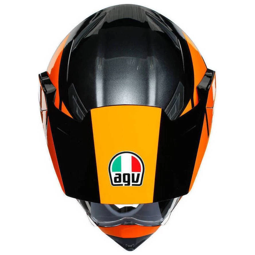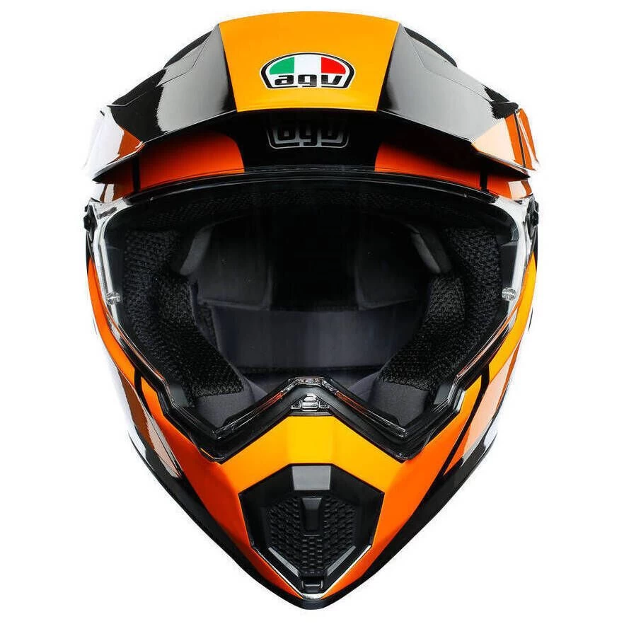 Its superior modularity allows 4 different confi gurations, simply removing the redesigned peak and the ultra-panoramic visor. The lightweight construction of the Carbon+Aramid+Glass fiber shell provides AGV highest safety standards, while premium interiors are water resistant and extremely comfortable. Aerodynamics and ventilation reach a new standard thanks to new extractors and the new adjustable chin guard port that can direct internal air flows where the rider need.