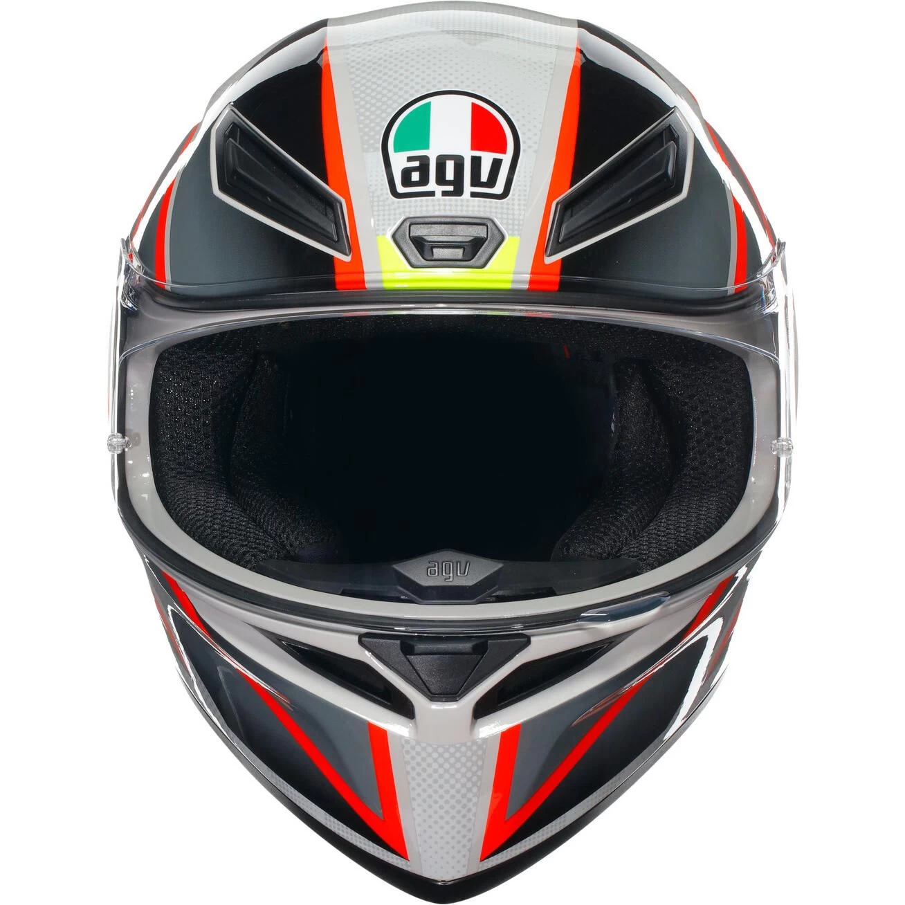 Racing spirit, for overcoming everyday challenges. K1 S is the road helmet that comes out of AGV’s experience in MotoGPâ„¢, suitable for a range of uses on any route. The aerodynamic shape of its shell made of high-resistance thermoplastic material, the front air vents developed through racing experience and the new Aero Spoiler designed in the wind tunnel maximize performance and provide stability even at high speeds in sports riding. The Ultravision scratch-resistant panoramic visor offers a wider lateral and vertical view, for total control of the surrounding environment. Uncompromising comfort, due to the soft, removable and washable Dry-Comfort interior. The AGV Extreme Safety construction protocol means that K1 S meets the requirements of the stringent ECE22.06 standard and then some. AGV K1 S is prepared for the installation of communication systems.