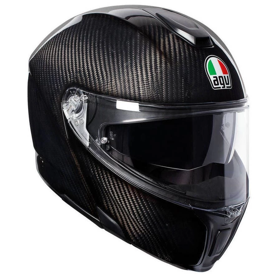 The world’s first SportModular helmet: the performance of a full face helmet together with the comfort of a modular. Entirely built in Carbon Fiber (shell and chin), this specific structure achieves the same protection performance of MotoGP’s Pista GP R in an incredibly light weight construction, combing the highest levels of comfort and safety. Designed to offer 190° horizontal view as the human eye capability, SportModular has been conceived in the wind tunnel for superior quietness, aero stability and ventilation.