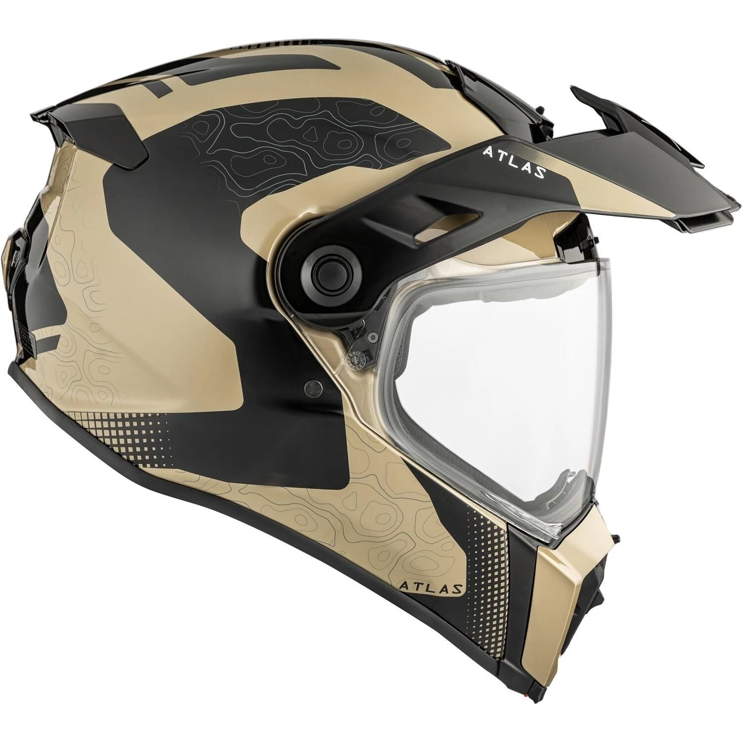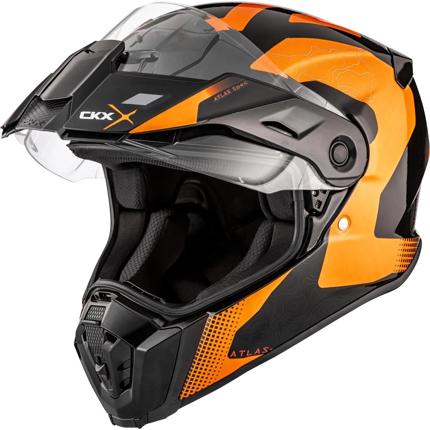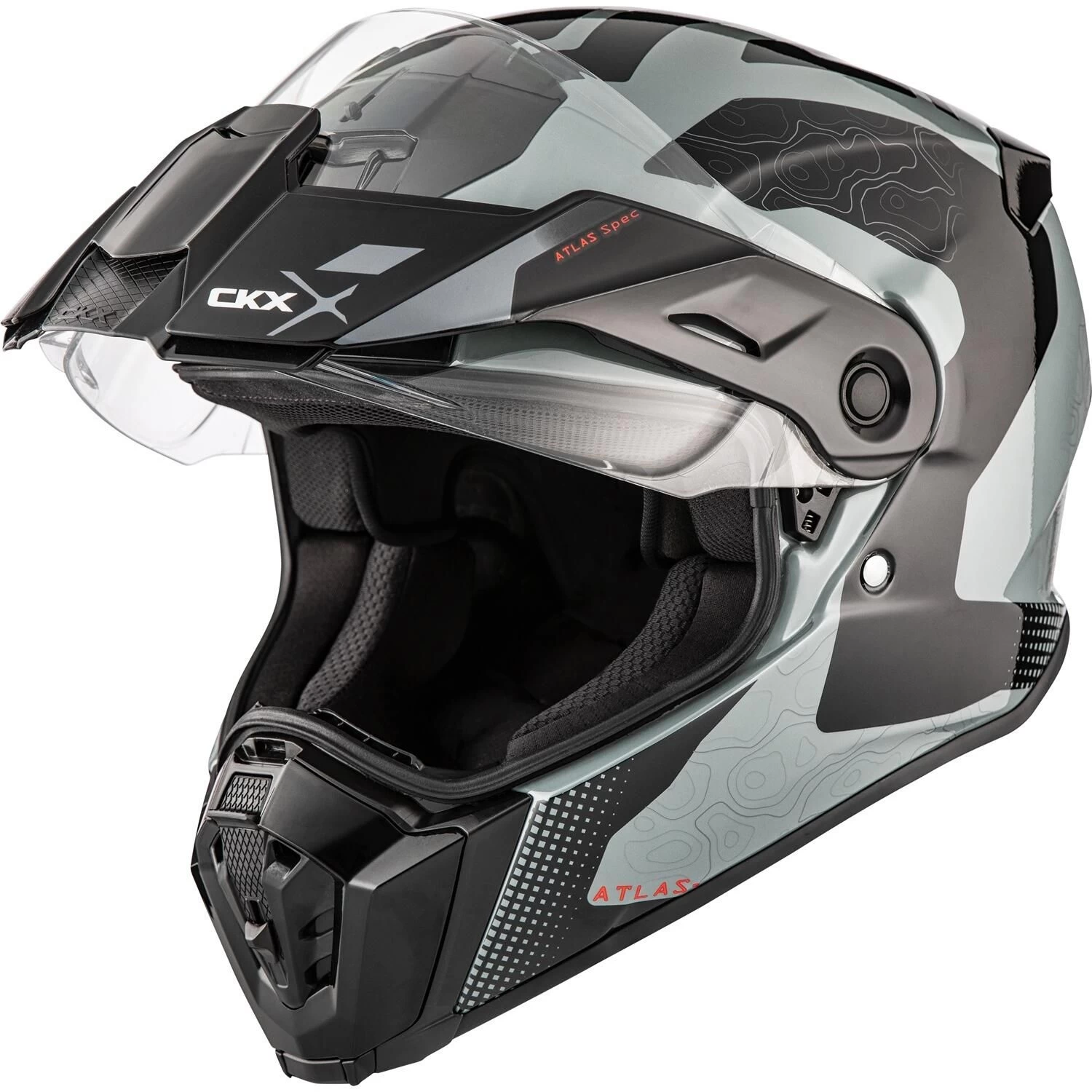 Discover Atlas, the CKX Dual sport motorcycle helmet. Totally imagined and created by the CKX team, this is the first helmet entirely dedicated to the adventure motorcycle enthusiasts. Right in line with its winter counterparts, the Titan and Mission helmets, the Atlas offers remarkable comfort and unique features. Thanks in part to its pivoting and removable muzzle , its multi-position extendable peak, as well as its interchangeable panoramic shield for 210º goggles , the Atlas can be configured quickly, without tools, to accommodate the riders preferences. Whether you are an adventure or enduro enthusiast, or favor paved roads, the Atlas will accompany you in all your journeys! Explore your territory. Ride at your own pace. Choose endless adventures.