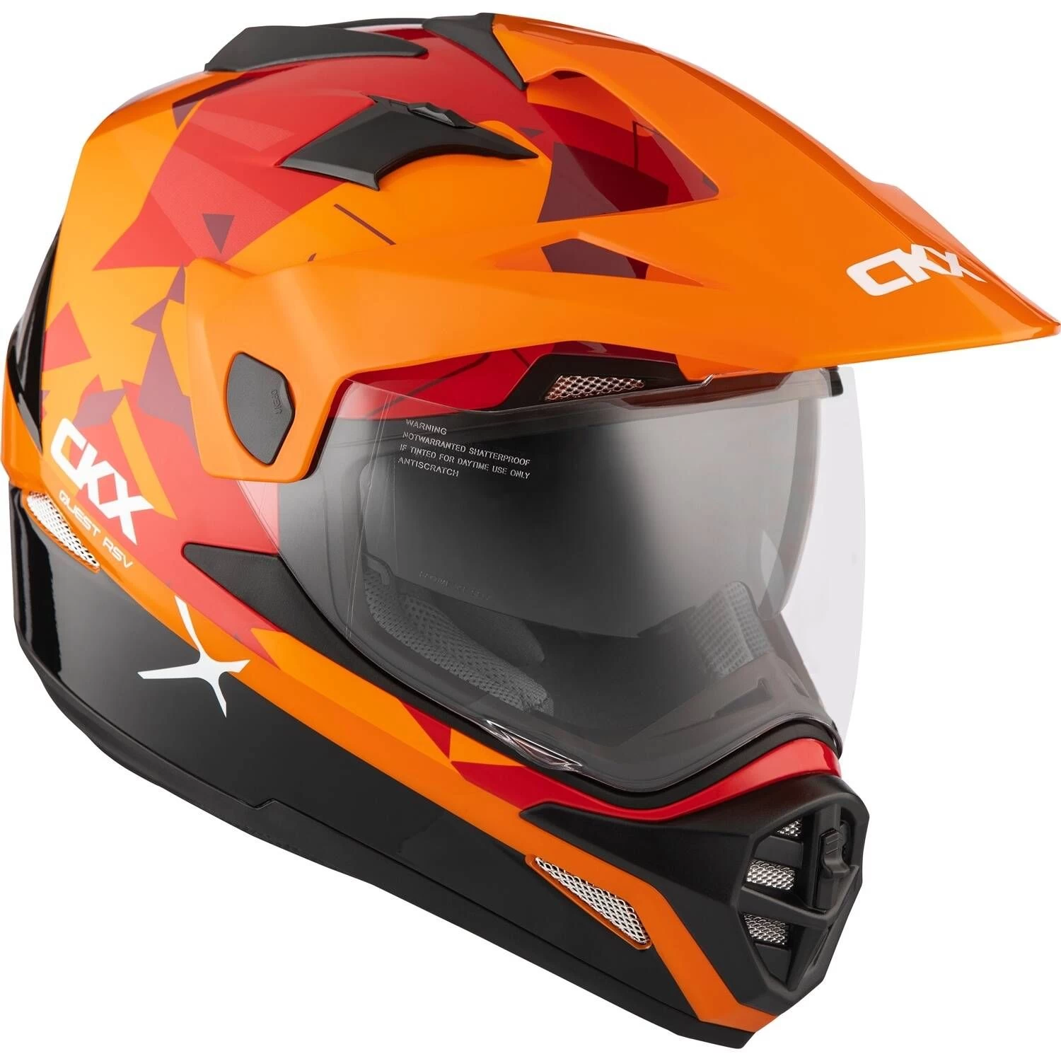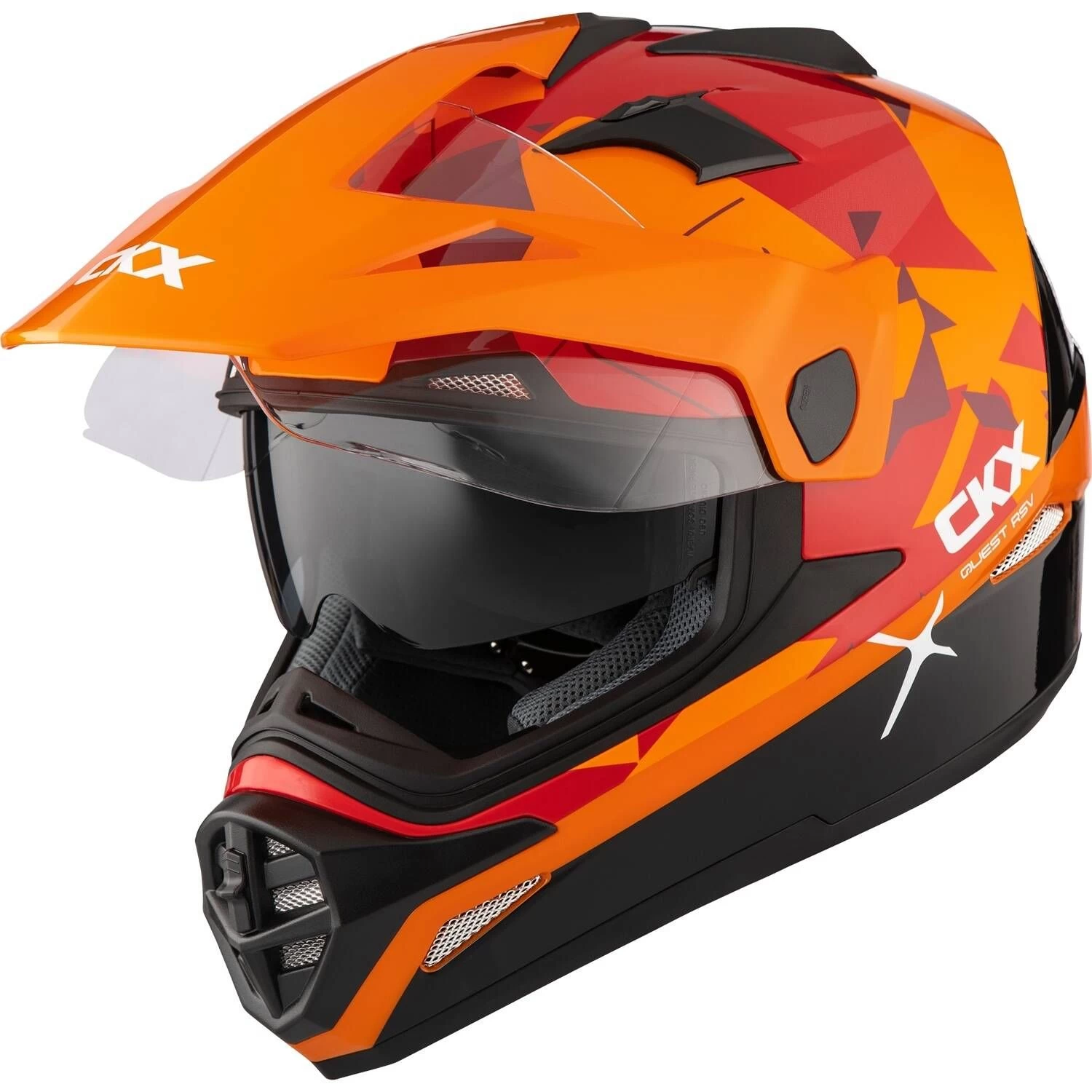 The wait is over. You’ve been asking for it, we made it. The Quest Dual Sport helmet is now part of the CKX helmet line up. Keep your off road look with the advantages of a full face helmet. Wear it no matter the conditions. No more dirt, wind and rain in your motocross helmet. Want some fresh air? Take the visor off and wear the Quest as a regular off road helmet, with goggles.
