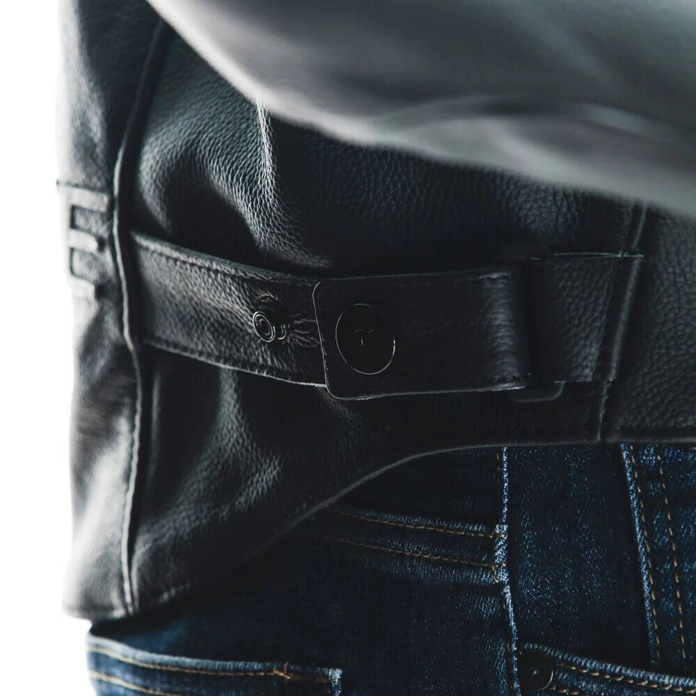 A snug fit and flexibility are ensured by a fit adjustment system at the hips, the S1 bi-elastic fabric sections, and the Microelastic 2.0 leather inserts on the back and arms, which increase freedom of movement, while maintaining standard skin protection.