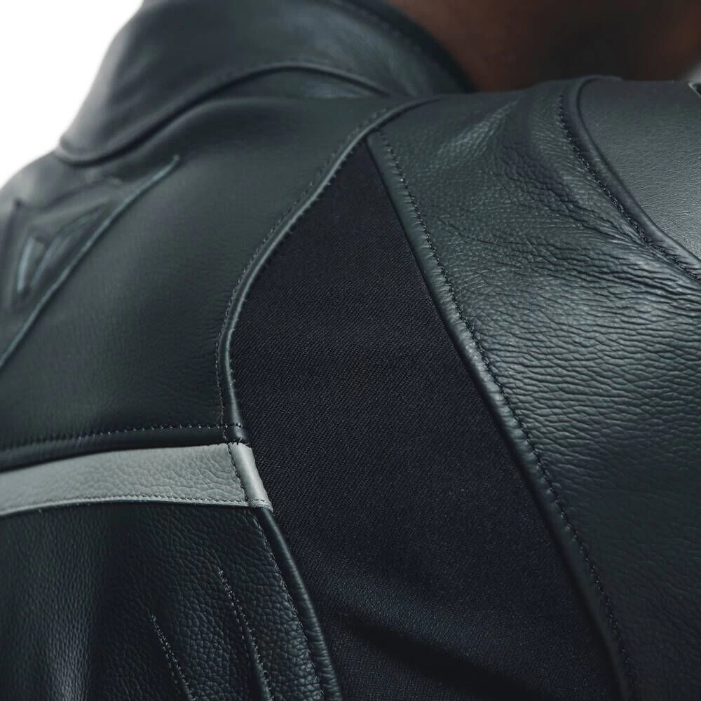 The Dainese Racing 4 leather motorcycle jacket, an iconic piece of the Dainese collection, with an athletic and tight fit to take you through sports riding. Made of premium Tutu cowhide with Nanofeel lining, it is equipped with four air vents, two on the sides and two on the chest, to offer optimized temperature.