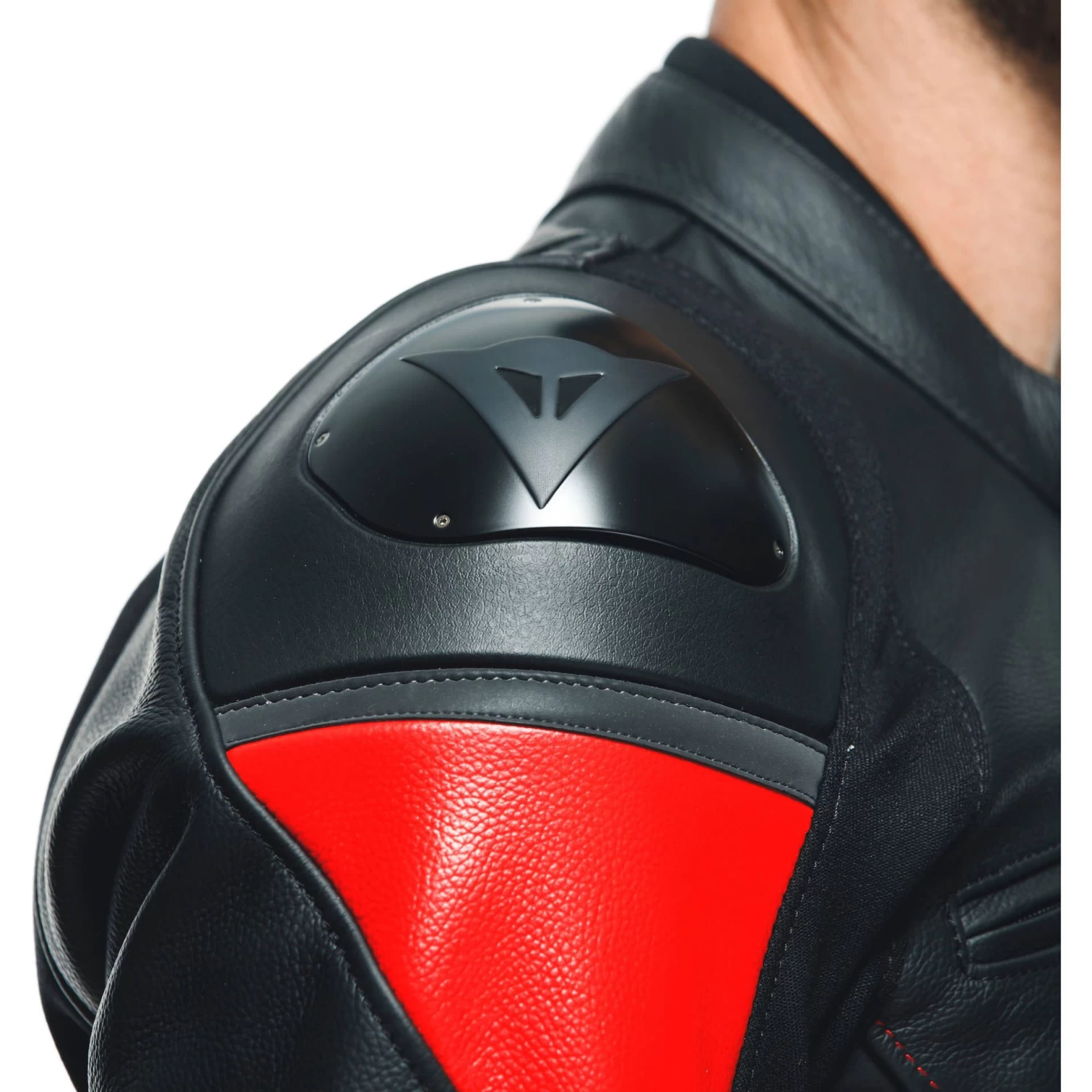 The Dainese Racing 4 motorcycle jacket is equipped with a zipper at the hem, which allows it to be connected to motorcycle pants, and EN 1621.1-certified composite protectors at the elbows and shoulders, which are further protected by interchangeable external aluminum plates – a distinctive Dainese technology – designed to support and facilitate sliding in case of a fall, thus avoiding the dangerous risks of rolling on asphalt.
