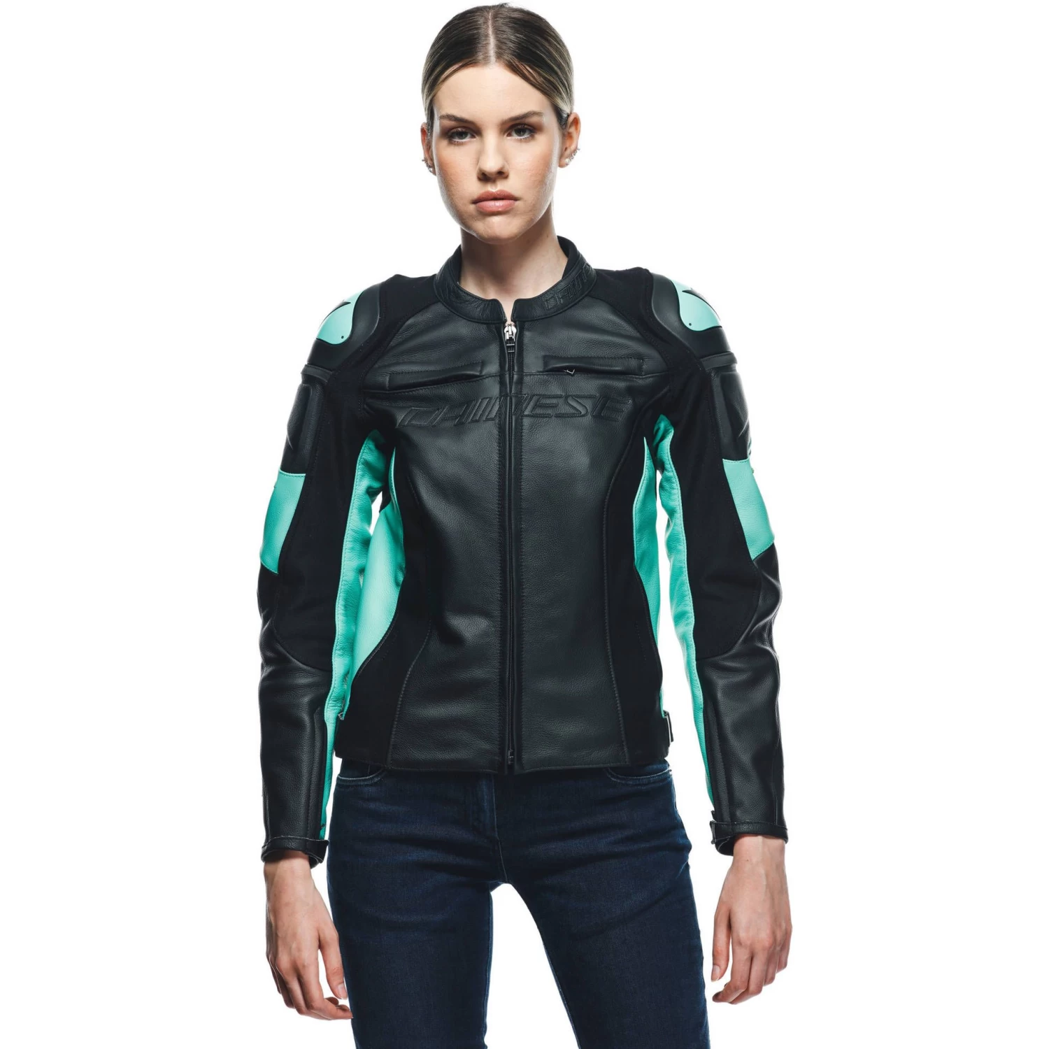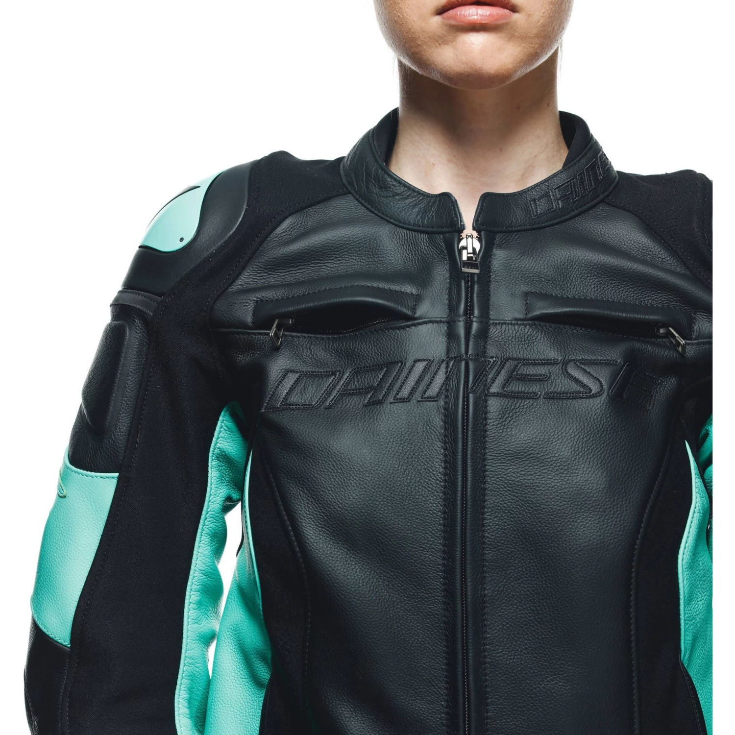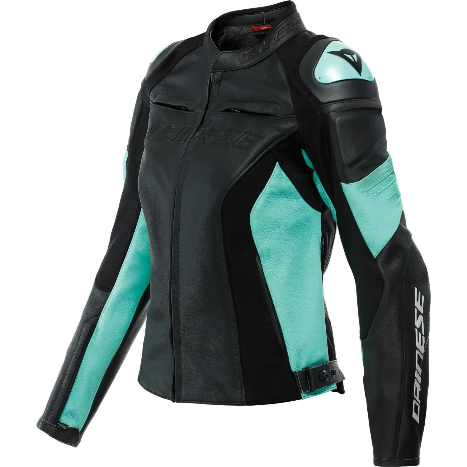 The Dainese Womens Racing 4 leather motorcycle jacket designed for the female body to offer extreme comfort and versatility through a series of details, which includes S1 bi-elastic fabric and Microelastic 2.0 leather applied to a premium Tutu cowhide structure. Additional features include an adjustable waist and collar, and the option to connect the jacket to motorcycle pants using the zipper fastening at the hem. The versatility of this leather motorcycle jacket also derives from the ability to achieve optimal temperature control using the two air vents positioned on the chest and two extractors on the sides, which work in synergy with the breathable Nanofeel® lining. Maximum safety is guaranteed by EN 1621.1-certified composite protectors at the elbows and shoulders, which are further enhanced by interchangeable external aluminum plates – a distinctive Dainese technology – designed to support and facilitate sliding in case of a fall, thus avoiding the dangerous risks of rolling on asphalt. Back protectors can be added to the Racing 4 Lady using the special pockets. The Racing 4 Lady women’s motorcycle jacket is also equipped with two external and two internal pockets to store small items in complete safety.