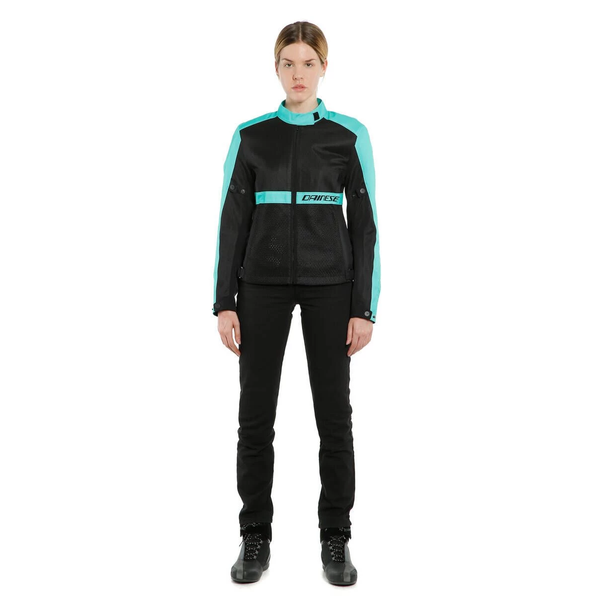 The Dainese Womens Ribelle Air Tex Jacket was designed for everyday use. Its mesh construction encourages airflow, maintaining the ideal temperature even on the hottest of days. Despite its perforations, the fabric ensures excellent abrasion resistance. Maximum safety in the saddle is guaranteed by composite protectors at the shoulders and elbows and the possibility to insert a Dainese G model back protector. Practical adjustments at the collar, cuffs, arms and waist allow for an ideal fit and optimum comfort. Stretch panels at the hips allow the jacket to trace the body’s every move. Quick-access outer pockets make it easy to store everyday items such as your phone, wallet and house keys. The jacket’s reflective inserts ensure visibility even at night and in conditions of poor light, increasing active safety. A waist zipper allows Rebel Air Tex Lady to be fastened to Dainese pants.