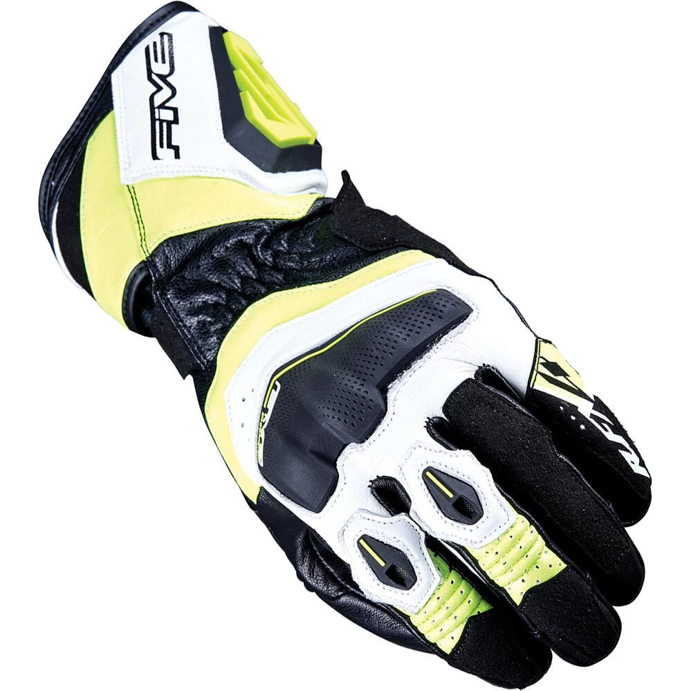 By adopting the brand-new FIVE ERGO PROTECH® ergonomic protective shell used in both Five’s urban and trail gloves, the RFX4 EVO offers a less aggressive look than that of the RFX1, RFX2 and RFX3. Though it fits in so naturally at the controls of a sportier bike, the RFX4 EVO is also right for riding a powerful scooter or a roadster, and thus, offers a more reassuring alternative to short gloves, which are more commonly used with this type of machine. It also offers the extra protection typical of Racing gloves, with all the comfort often found in less exclusive gloves. The RFX4 EVO is well and truly the perfect compromise between our road gloves and gloves for pure racing use.