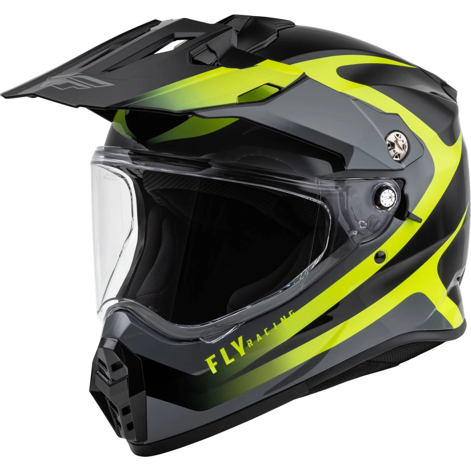Fly Racing offers more than just moto/off-road specific helmets. The new Trekker was designed to handle all challenges, pavement, dirt, and snow. This durable and lightweight helmet is goggle friendly, providing off road versatility. If you’re jumping back and forth between your favorite trail and the highway home, the Trekker gives you the range to transition seamlessly. The Trekker boasts both ECE and DOT approval, making it an affordable and trusted option. The optically superior clear shield is scratch resistant and dual and dual electric options are available for the coldest of days on the pavement or snow. Multiple tint and mirror options, and a drop-down inner sun shield completes every choice for changing conditions. With TFV, True Functional Ventilation, the Trekker will keep you cool on those long summer rides. It’s one of the most versatile pieces in the FLY Racing collection, combining off-road, street, and snow into one amazing helmet.
