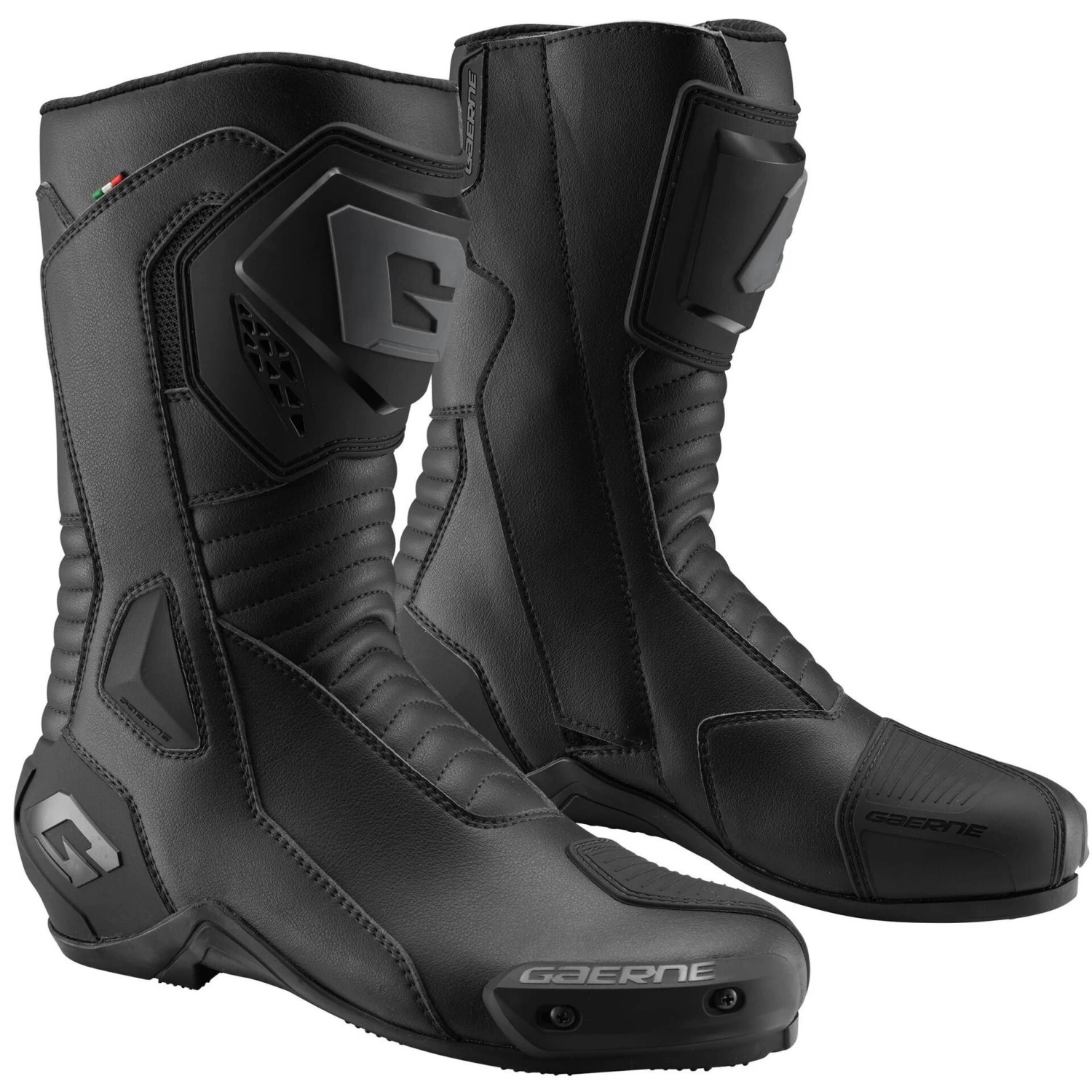 The Gaerne G-RT is a high-performance and versatile motorcycle boot for the sporty rider, combining design and protection made in Italy. The sturdy heel cup and shin plate provide maximum stability. A breathable mesh inner lining and special padding in the shin area provide additional comfort. The side entry system with elastic zipper with Velcro cover provides a custom fit. The racing sole with excellent grip is petrol and oil resistant. The Gaerne G-RT motorcycle boot fuses sporty styling with advanced technology.