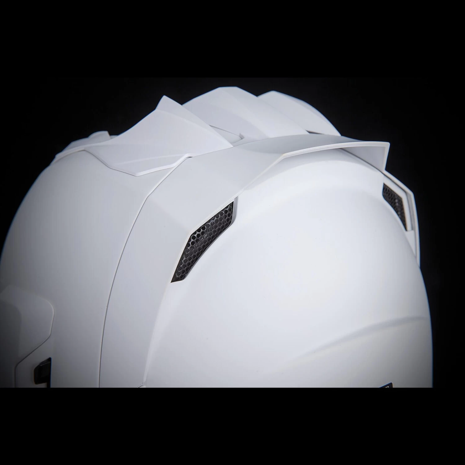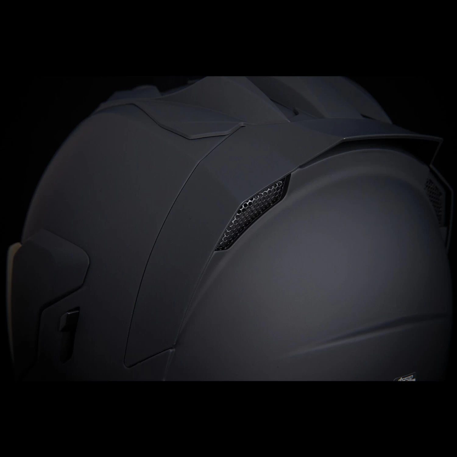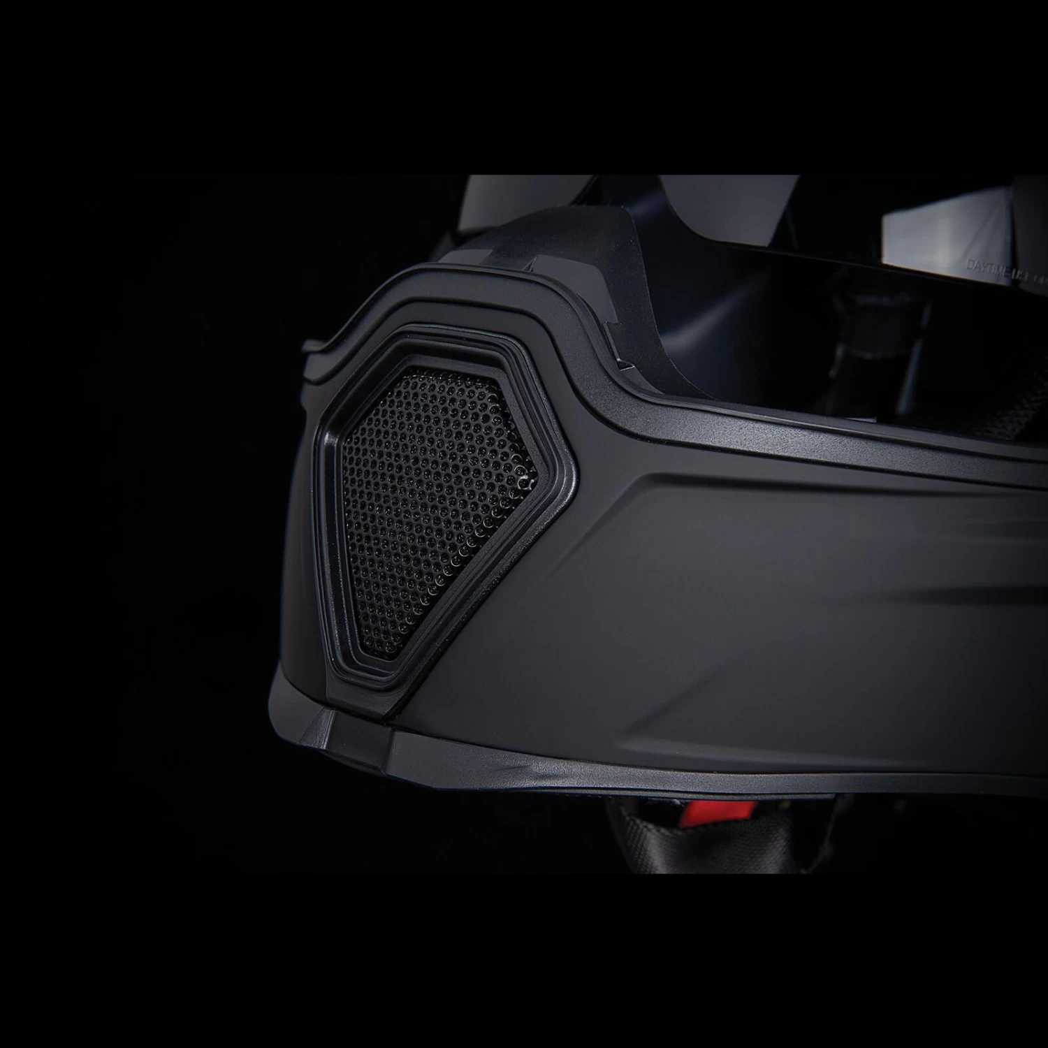 - The helmet’s ventilation system consists of strategically placed air vents, intakes, air channels and exhaust ports. The oversized chinbar intake enhances airflow, keeping you cool by routing air where you need it most. A decrease of both drag and weight was achieved by sculpting the traditional neckline of the Airflite to avoid jacket or suit interference.