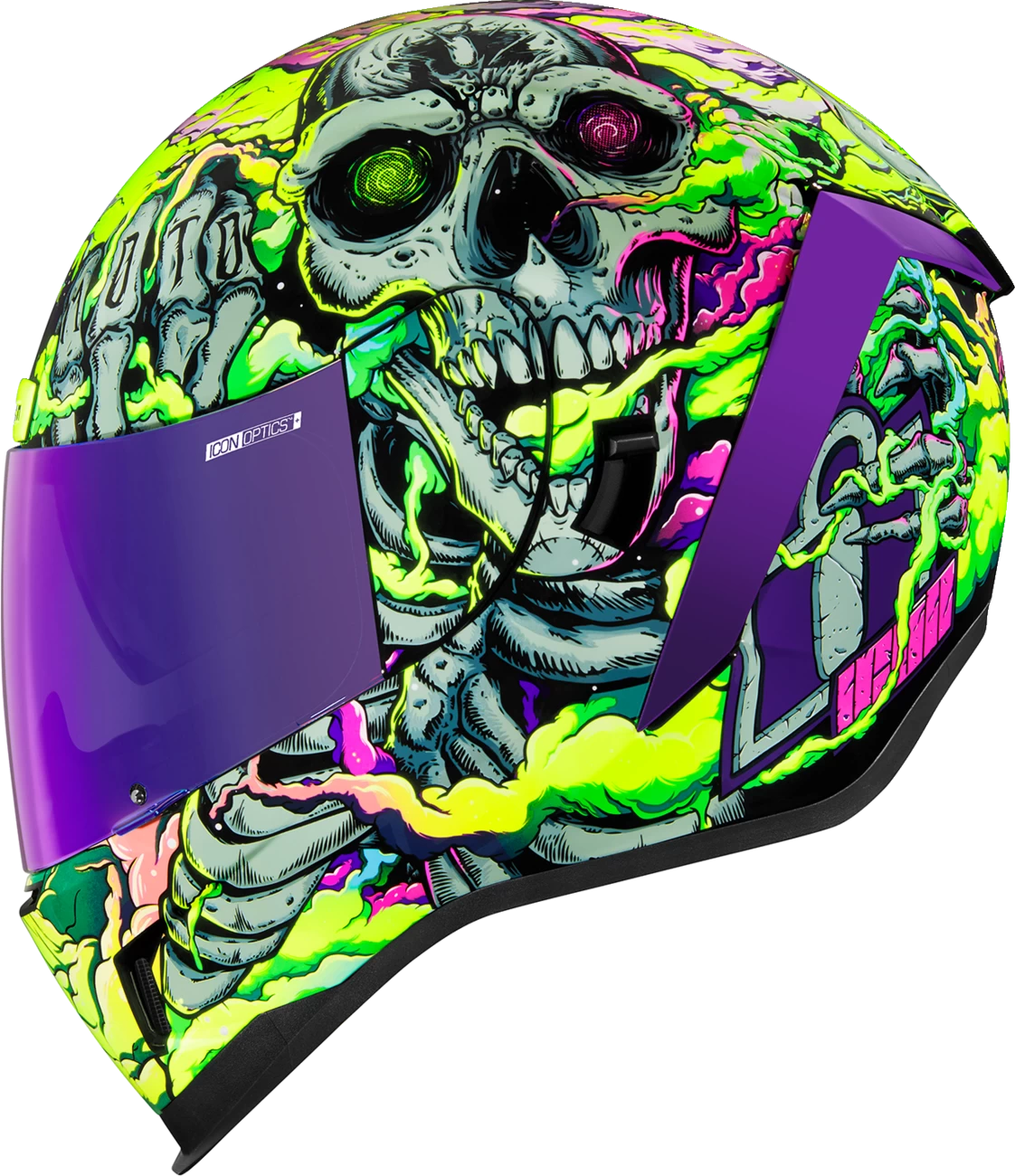 ICON loves skulls, and this one is the trippiest of them all. The glow-in-the-dark skull emerges from a cloud of psychedelic smoke to keep things from getting too mellow. The Airform Hippie Dippy Helmet features ECE22.06 certification and ICON’s Intermediate-oval headform, meaning it’s comfortable for most riders. Up front, a Purple RST Fog-Free Optics shield gives you a clear view through the haze.