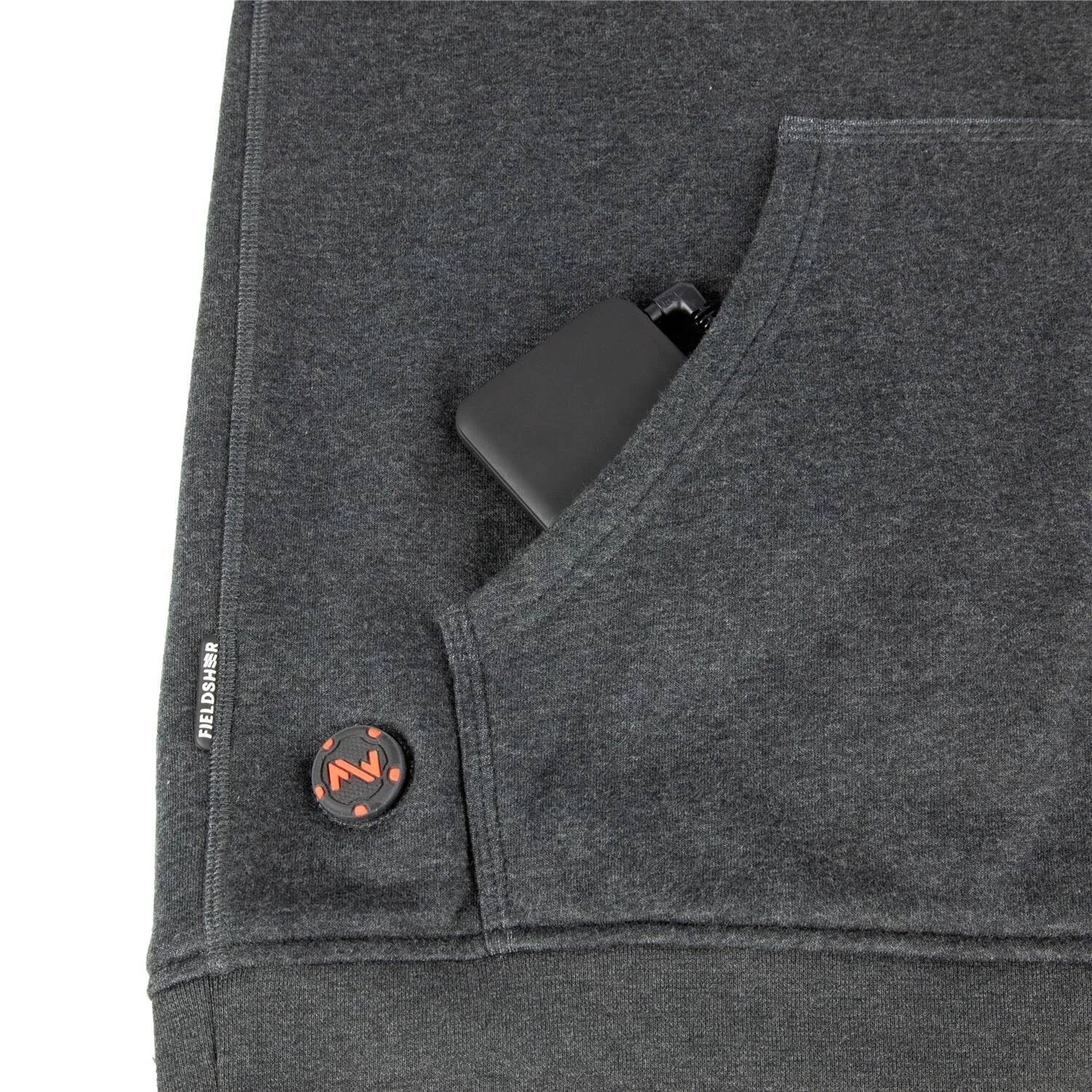 The Phase Plus heated hoodie is made from 70% cotton and 30% polyester fleece that keeps you warm when you need it. The Phase Plus heated hoodie has a comfortable and soft hood, with adjustable drawstrings, for extra warmth on a cold night. The Phase Plus heated hoodie includes 2 large hand pockets with plenty of room for your phone or other items. The Phase heated hoodie is powered by Mobile Warming® Technology 7.4-volt heating system, the same that is our men’s heated jackets. There are 3 heating zones, one on the back and 2 on the chest, focusing heat to critical areas that keep your core warm. The Phase Plus heated hoodie 7.4-volt heating system can provide temperatures ranging from 135°F on high to 90°F on low. On high, expect up to 2 hours of heat. On low, the Phase Plus heated hoodie can keep you comfortable for up to 10 hours! Temperature control is simple with 2 ways to adjust the heat. First, the built-in waterproof touch control button. With a simple button push, it lets you choose from 4 instant heat settings with multi-colored LED indicator. Plus, we’ve incorporated Bluetooth® control with our proprietary, free to download via App Store® or Google Play Store®, MW Connectâ„¢ app. Through the free MW Connectâ„¢ app, you can quickly toggle through all connected Fieldsheer® powered by Mobile Warming® technology garments and adjust individual heat levels to your liking. MW Connectâ„¢ app allows you to get real-time updates on battery levels and update your garments when new firmware becomes available. The Phase Plus heated hoodie is a lightweight heated garment that fits whether you’re around the village or in the field for work; just don’t let your girlfriend try it on or you’ll never see it again!