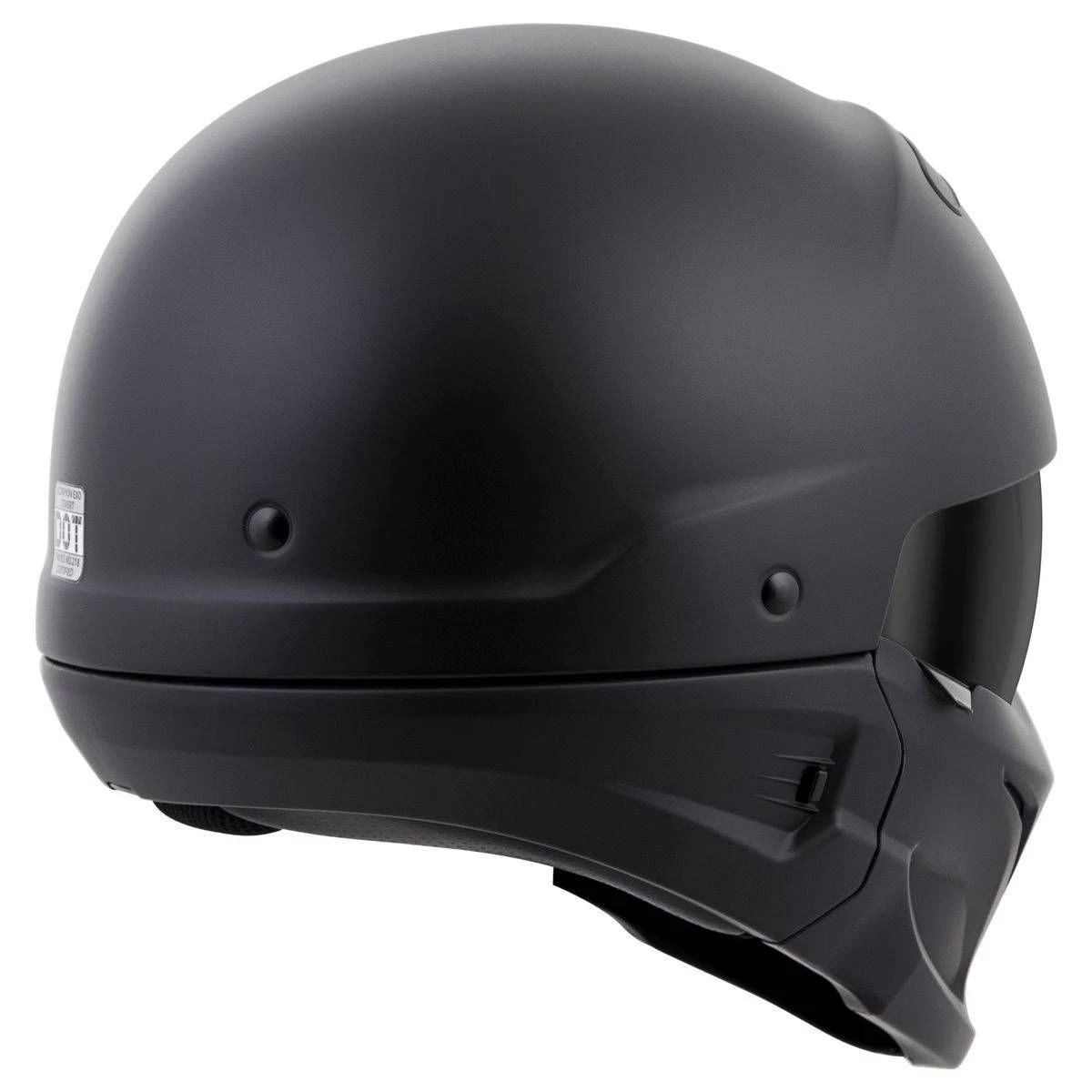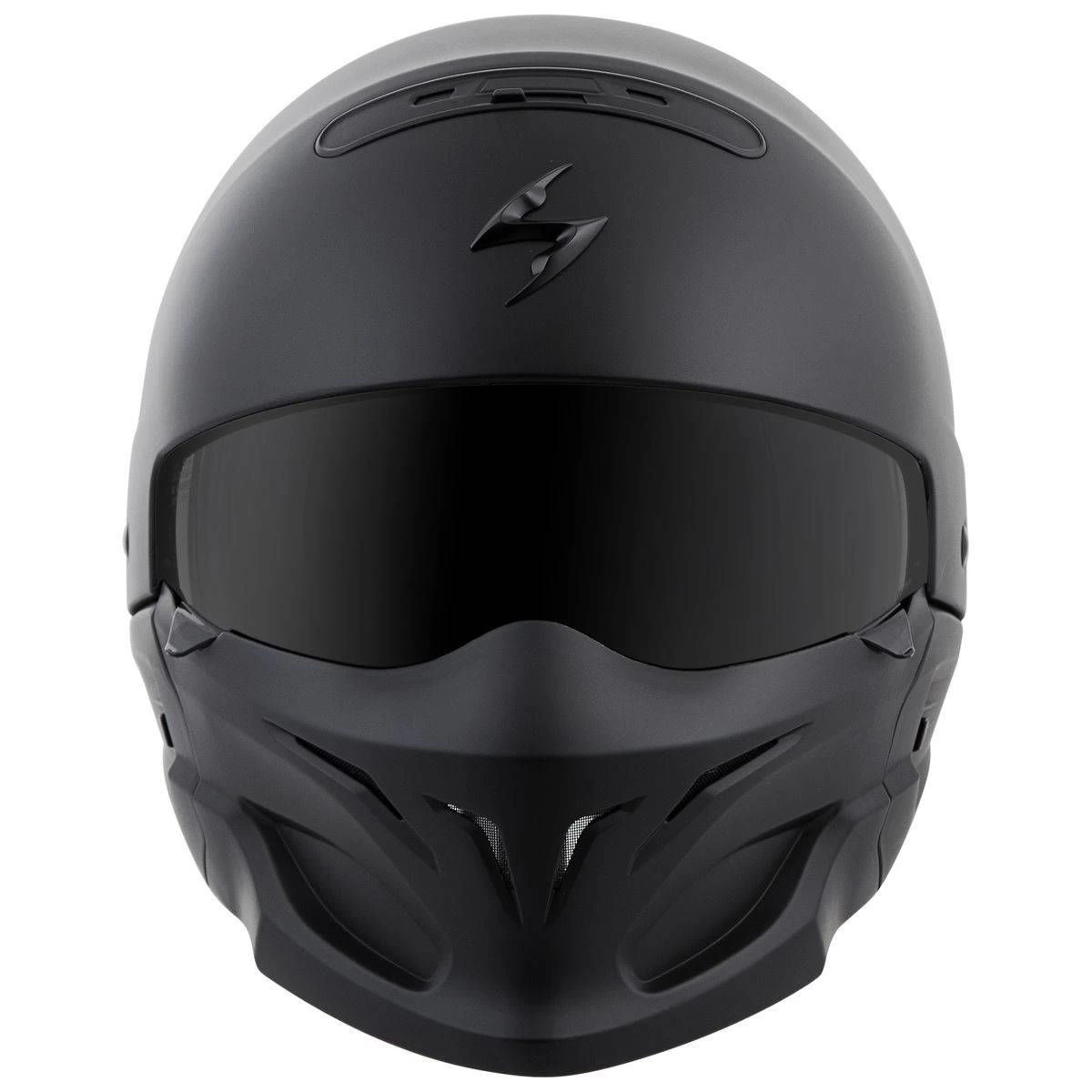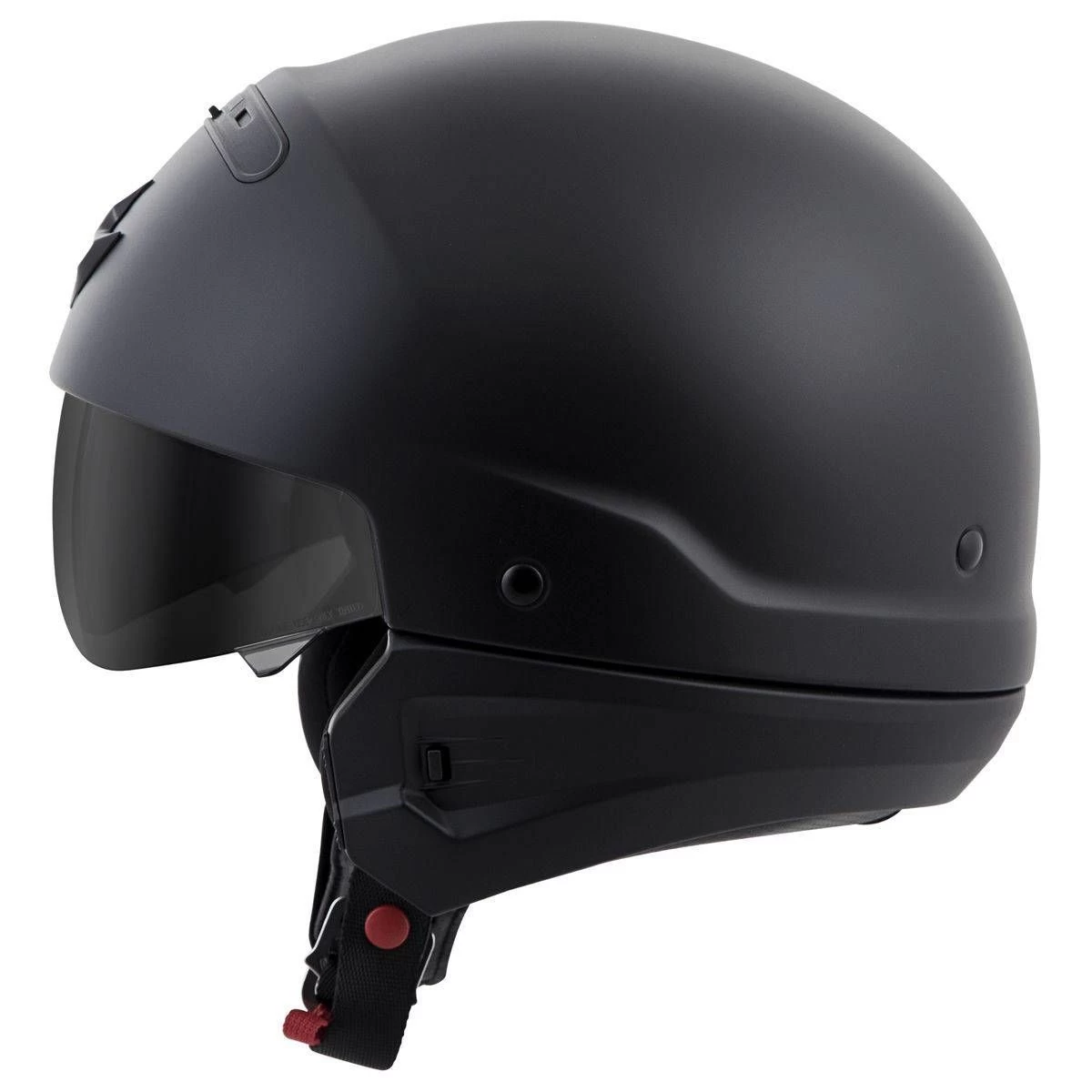 Scorpion adds a whole lot of “but wait, there’s more” to the classic half shell with the Scorpion Covert Helmet. They start off strong with a tune-able ventilation system. Next they mix in a no-frills drop down sun visor system. One pull on a tab lowers the shades then pushing the same tab retracts them; it couldn’t be easier. Snapping in a rear bottom sleeve transforms your lid into a 3/4 helmet and helps to muffle some of the cries from your lives-saving exhaust. Despite the extra coverage, Scorpion’s Kwikwick liner keeps your head in the game by channeling heat and humidity up to the ventilation ducts to be piped out the back. You’ll be cool as a cucumber. But wait, there’s more. Attaching the front mask shields your pretty face from bugs, and you-name-it debris as you’re blasting down the interstate. If you’re one who frequently needs to transition from being seen to only heard, the Scorpion Covert is there for missions ranging from the twisties to the impossible.