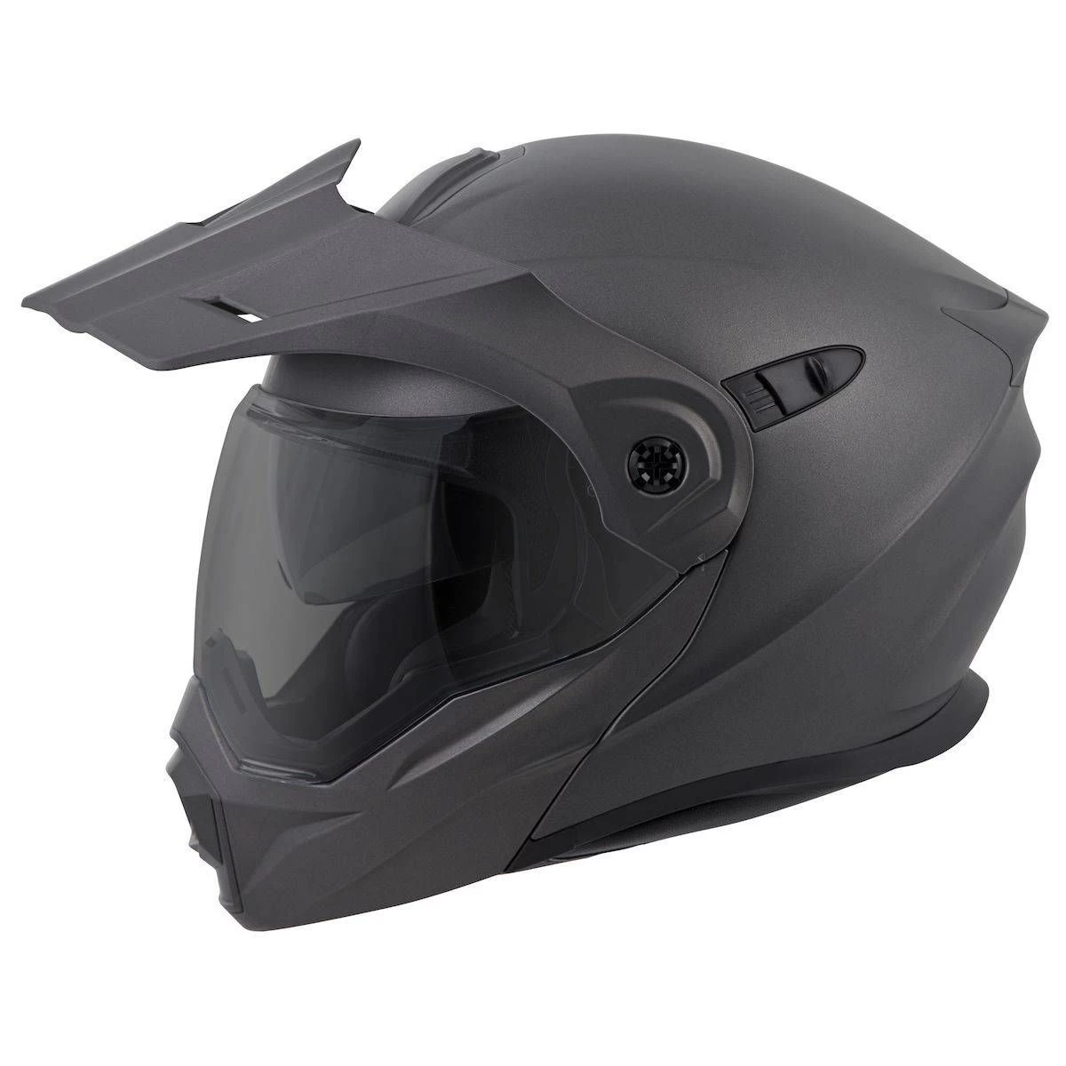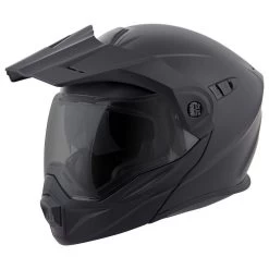 Scorpion has redefined a segment, melding the best features of touring helmets with the versatility of an off-road lid. Scorpion EXO-AT950 Helmet is the all-in-one swiss army knife of the helmet world. The modular chin bar allows you to relieve your claustrophobia or ask for directions while the off-road style peak and large eye port deflects roost, blocks the sun and allows you to wear goggles when tearing up the trails. Additional features such as a Everclear anti-fog face shield and Speedview drop-down internal sun visor keeps your vision clear and ready for whatever is around the next corner. If you’re going to be hitting the highway, the peak visor is easily removed to give you an aerodynamic profile so you can bug out at speed. Eyeglass compatible cheek pads and a KwikWick II liner ensures total comfort.