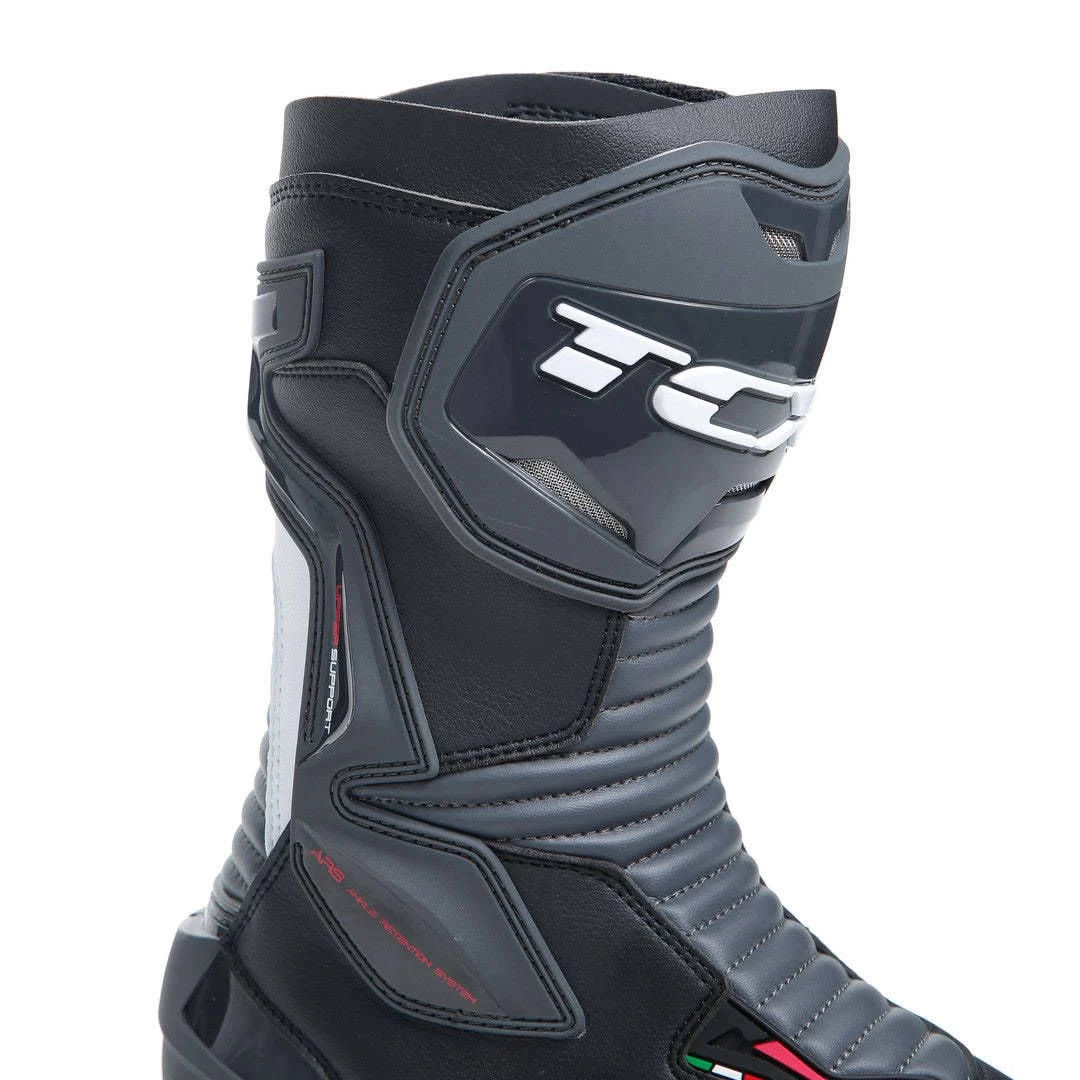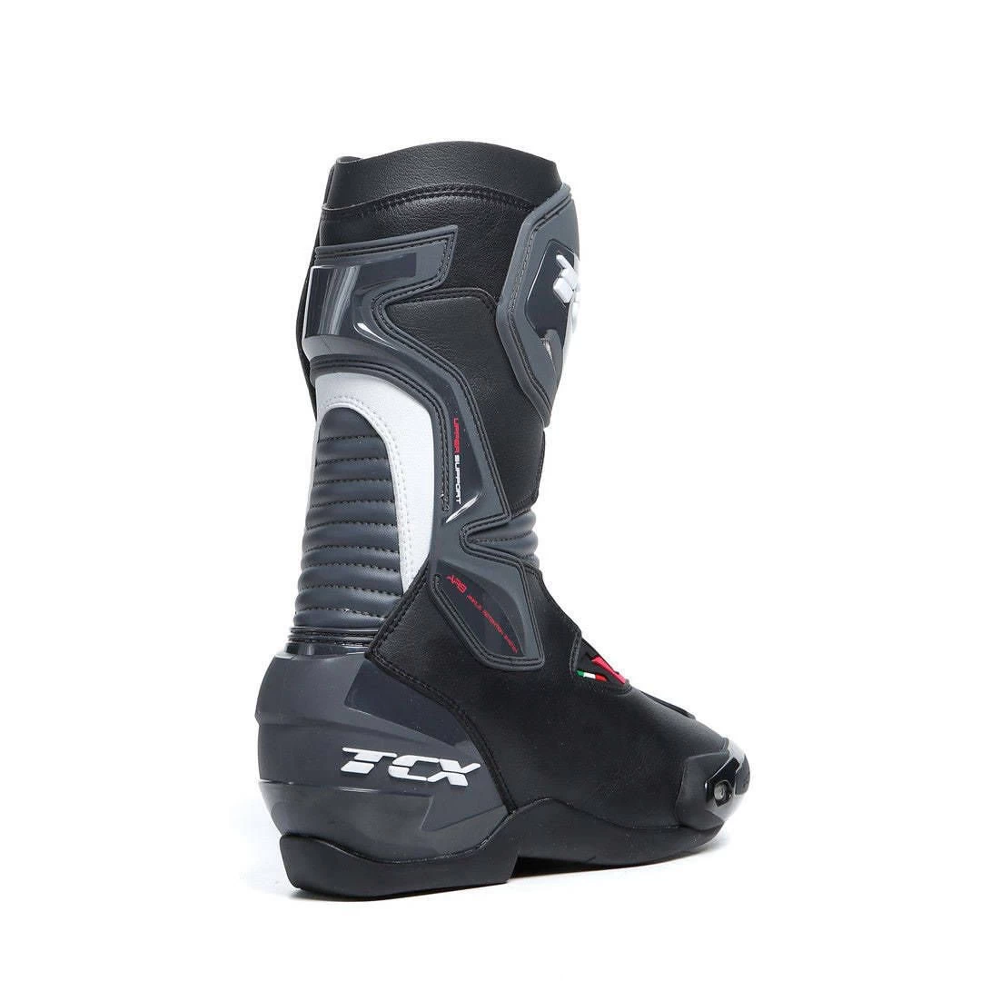 The TCX SP-Master Boots are built to balance sport performance with touring comfort. Featuring extensive accordion stretch bellows at the front and back of the ankle joint, the SP-Masters achieve excellent flexibility and control. Strategically-located polyurethane injection-molding offers protection at the shin, lateral malleolus, the heel counter, as well as the shift pad and replaceable toe slider.