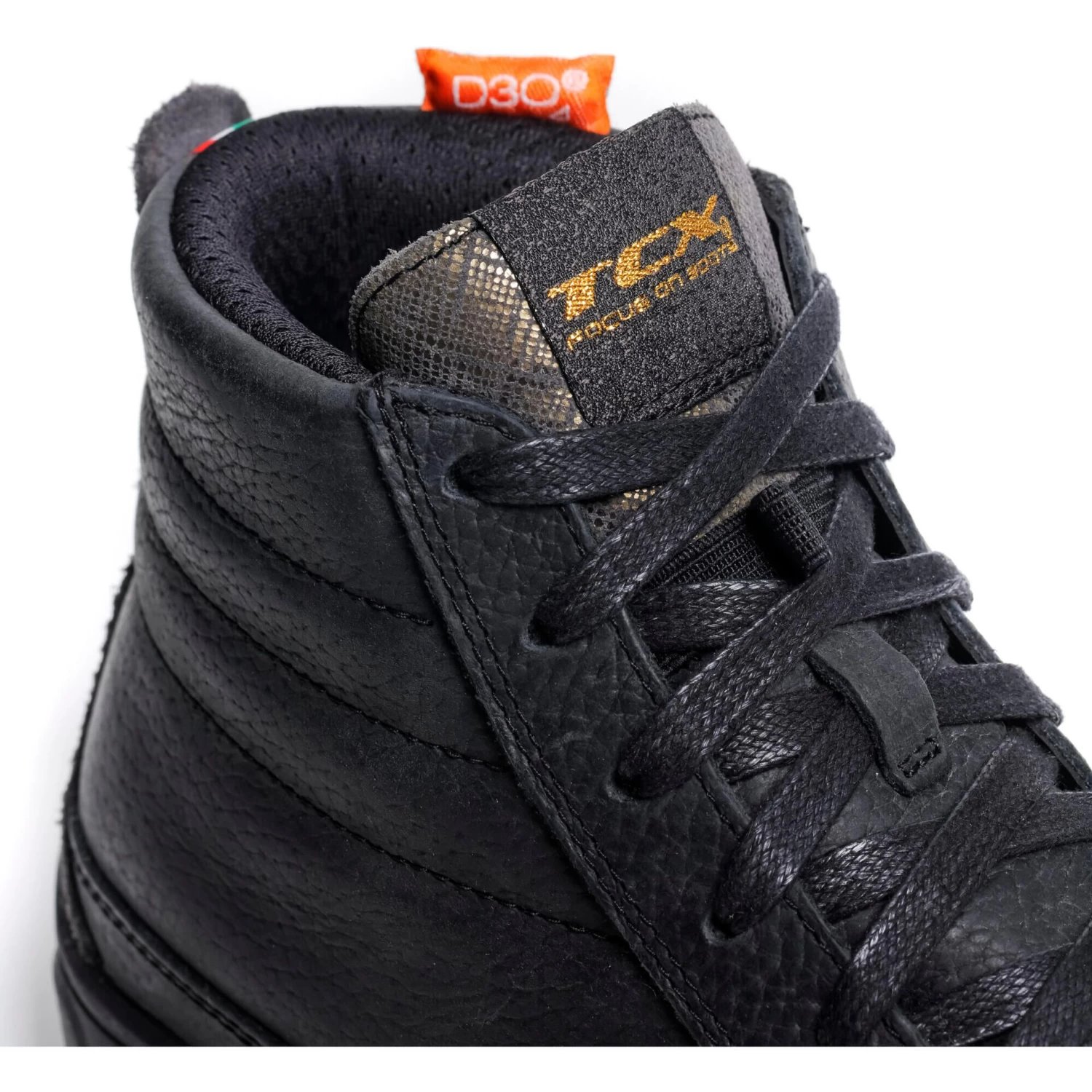 The Women’s Street 3 Waterproof motorcycle shoes are certified and waterproof, owing to the T-DRY waterproof membrane that makes them suitable for all conditions. With D30® inserts for reinforcement on the ankle and protection on the toe and heel, they are designed according to the Woman Fitting Concept, the special TCX protocol developed to combine a perfect fit for the female foot with maximum safety, protecting the foot’s sensitive areas. Protection is guaranteed by the special Zplate® insert in molded polymer, which combines transverse rigidity for maximum safety and longitudinal flexibility owing to its Z-shape. Zplate® allows the shoes to follow all the natural movements of the foot, both when riding and when walking, while simultaneously protecting it by ensuring the shoes are not crushed in case of impact. The upper features suede inserts, visible seams and lace-up fastening. The OrthoLite® insole boasts long-lasting and highly breathable cushioning, making these shoes exceptionally comfortable. The wear-resistant Groundtrax® sole is characterized by a tessellated tread that guarantees maximum grip, to ensure stability even in the wet.