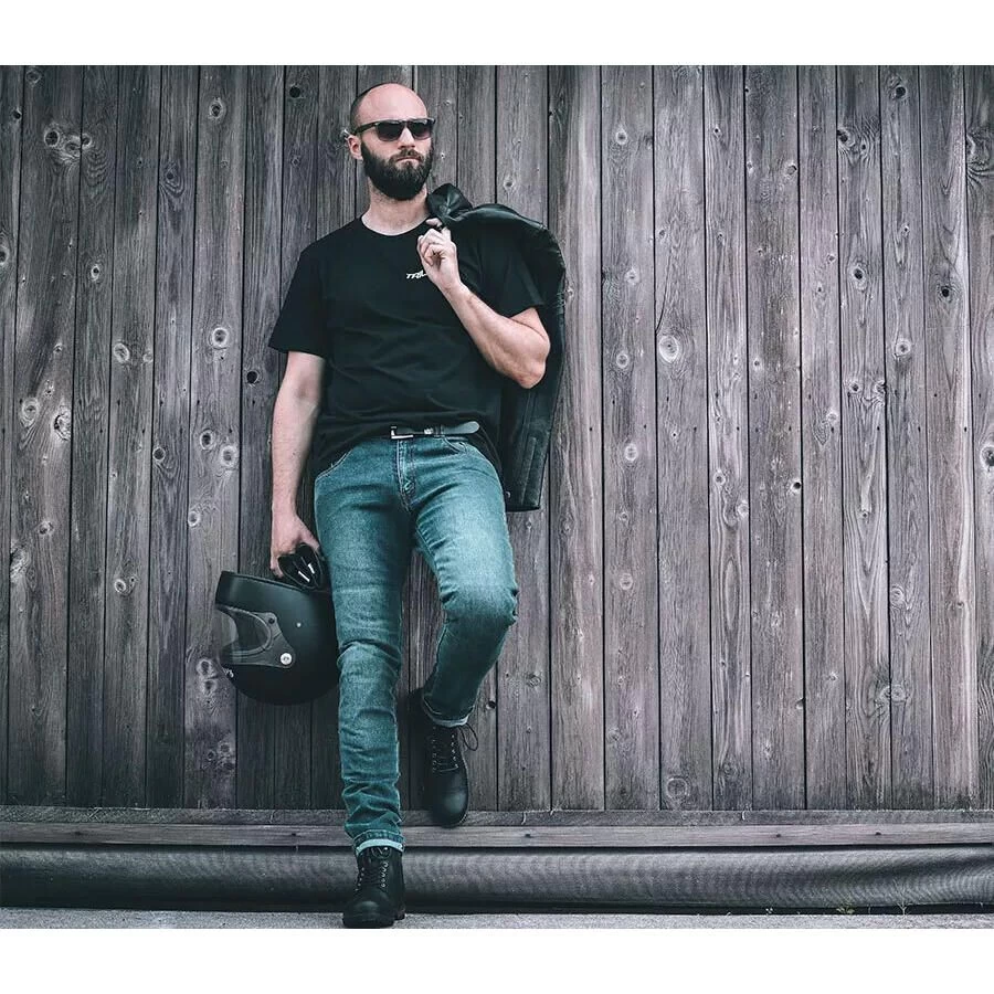 Trilobite Downtown jeans, a stylish single-layer denim. No one will know you are wearing motorcycle jeans!