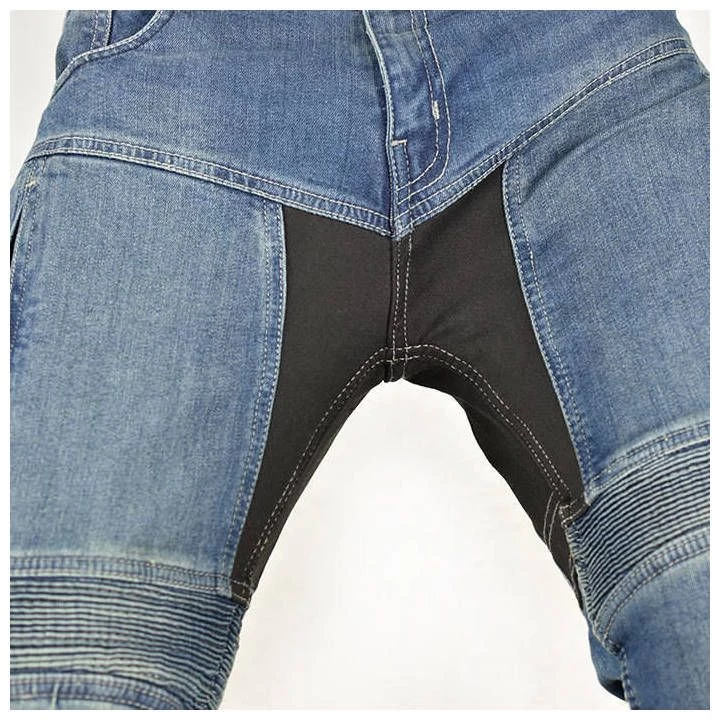 A pair of these jeans will offer unrivalled riding comfort. It is not only because of stone washed elastic denim but also by ergonomically shaped stretch panels in crotch, knees, and back waist zones. The abrasion resistance is featured by progressive DuPont™ technology aramid fibers made with Kevlar® will protect your skin in case of friction during an accident. The removable Trilobite Premium protection CE Level 2 in knees and hips will guarantee maximum impact protection. Riders will easily find the correct position of knee pads due to adjustable height Velcro system inside the knee pockets.