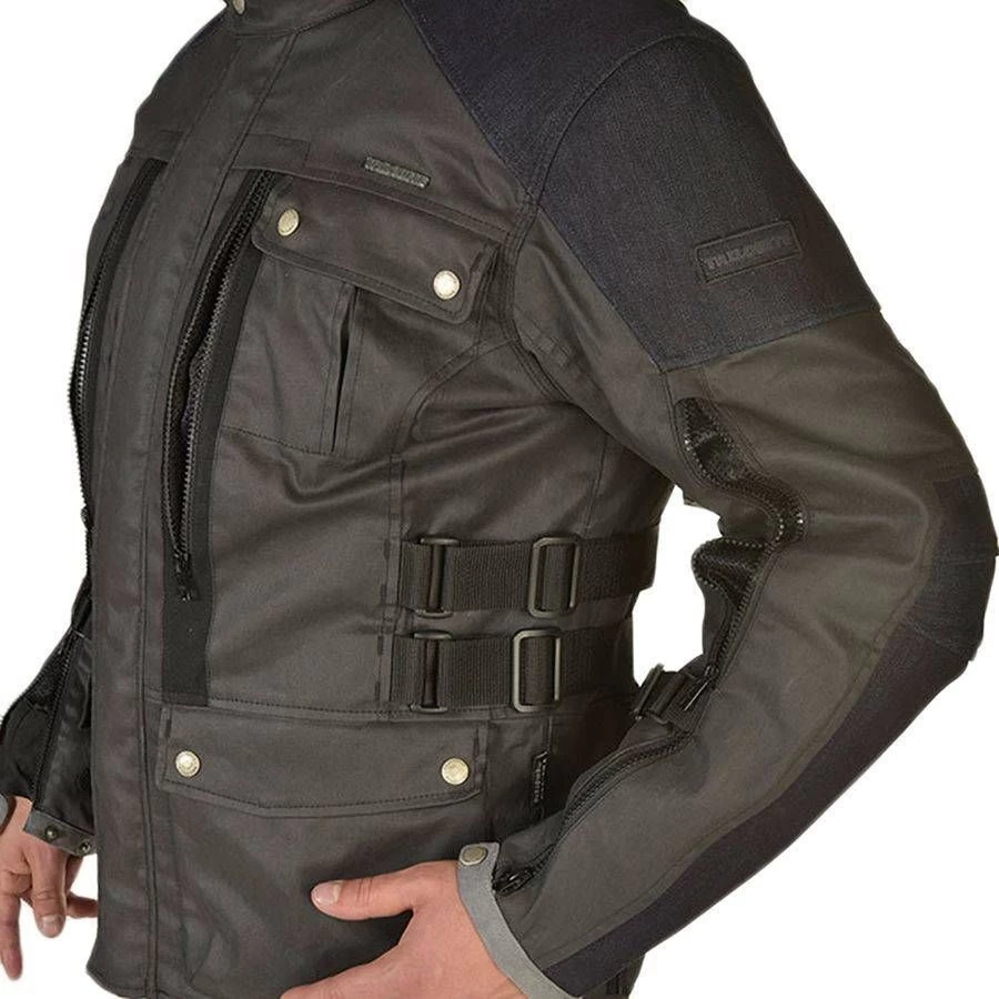Rally jacket is a technical touring jacket in gentlemen style. Absolute balance between classy look and safety. The three-layer construction makes this jacket an all-season equipment. Separate layers made of Tri-Tex membrane (10,000/10,000) and Thermolite thermo insulation lining can be independently connected to the jacket when you need it. Denim panels on the jacket are made of Trilobitex technical denim which contains aramid fibers and nano membrane inside. These attributes give Rally jacket extensive abrasion and water resistant qualities.
